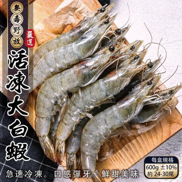 搶先評價 “無毒活凍超大白蝦 x4盒(每盒24~30尾/600g)”